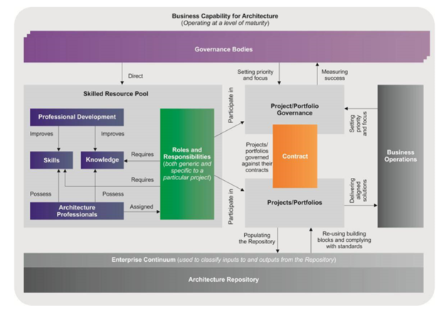 - The Architecture Capability defines the parameters, structures, and processes that support governance of the Architecture Repository.