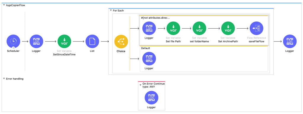 Anypoint platform control plane allows you to access the logs for cloud hub and on-premises deployments. However depending on the organization subscription for on-premises deployments the logs might not be available. I had a client who had such a subscription. While the admin had access to the VM, the Mule support team did not have access to the VM. In order to resolve this issue I created a simple solution that would copy the logs to an FTP server that Mule support team had access to.